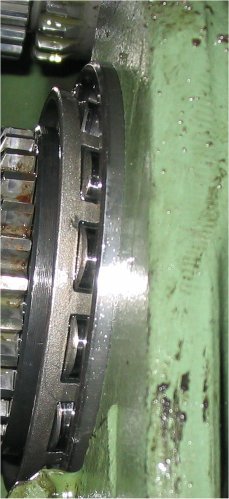 C'est simple, sous l'action du couple le pignon d'attaque à tendance à "sortir" vers l'arrière et IL SORT !!! entamant ainsi les têtes des boulons. Alors quoi ? eh bien après avoir ouvert le couvercle de boite je m'aperçois que les roulement du couple conique ont un jeu infernal . Cependant toute la pignonnerie est nickel. L'origine du bruit est donc bien là ! C'est aussi pourquoi le synchro saute en 2/3ème du fait que le pignon d'attaque recule, il emmène avec lui le synchro et hop, tout le monde dehors.